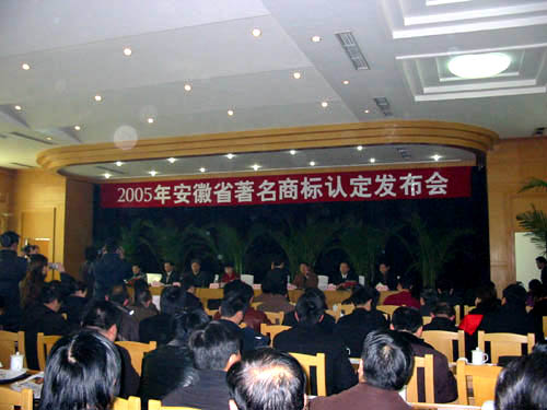 2006年1月10日上午,2005年安徽省著名商標(biāo)認(rèn)定發(fā)布會(huì)在合肥八一賓館隆重舉行,省政府文海英副省長及省工商局領(lǐng)導(dǎo)出席本次發(fā)布會(huì)。根據(jù)《安徽省著名商標(biāo)認(rèn)定與管理辦法》的規(guī)定,由安徽省著名商標(biāo)評(píng)審委員會(huì)審議,并經(jīng)安徽省工商局局長辦公會(huì)議審定,我公司“中德”等111件商標(biāo)為2005年安徽省著名商標(biāo)(其中馬鞍山市共有5件商標(biāo)入選),有效期自20061月起至200912月底止。