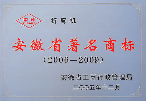 我公司“中德”商標(biāo)榮獲2005年“安徽省著名商標(biāo)”