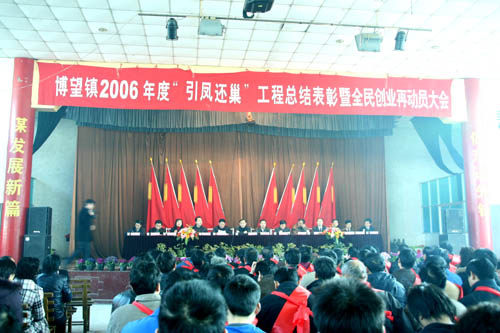 2007年2月26日上午9時(shí),博望鎮(zhèn)2006年度“引鳳還巢”工程總結(jié)表彰和全民創(chuàng)業(yè)再動(dòng)員大會(huì)在博望文體中心隆重舉行,當(dāng)涂縣縣長操隆山、縣委常委、博望鎮(zhèn)黨委書記張清、鎮(zhèn)長劉國寶等出席了大會(huì)并作了重要講話。會(huì)議對2006年度“引鳳還巢”和全民創(chuàng)業(yè)兩大工程中涌現(xiàn)出的各類先進(jìn)集體、先進(jìn)個(gè)人予以了表彰并對2007年的工作進(jìn)行了全部的部署。