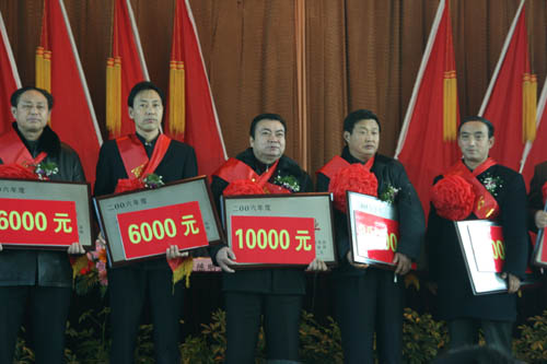 我公司獲得了“納稅大戶”(獎(jiǎng)金10000元)和“品牌與科技創(chuàng)新先進(jìn)企業(yè)”(獎(jiǎng)金2000元)兩項(xiàng)大獎(jiǎng),我司青島辦事處經(jīng)理?xiàng)钅緜€(gè)人榮獲了“十佳推銷員”稱號。