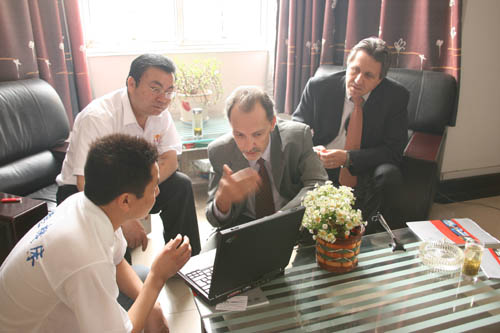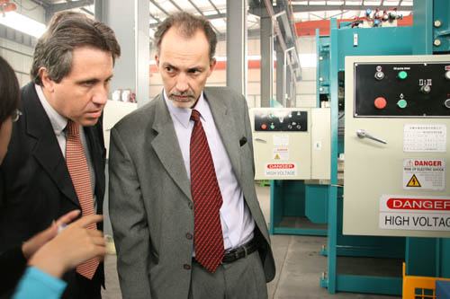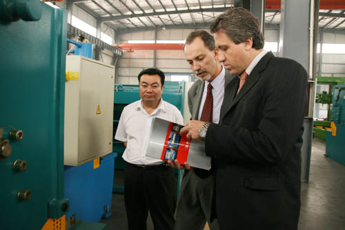 Aldo Strobbe Turk先生和Michael Can先生分別是秘魯一家專業(yè)機(jī)械進(jìn)出口公司的采購經(jīng)理和銷售經(jīng)理。他們此行的目的是對我公司進(jìn)行實(shí)地參觀考察,并尋求以中德在秘魯獨(dú)家代理的形式與中德達(dá)成合作意向。公司領(lǐng)導(dǎo)熱情地接待了兩位外商。公司領(lǐng)導(dǎo)首先給秘魯客商介紹了我公司近年來產(chǎn)品的研發(fā)、生產(chǎn)、銷售情況以及我公司產(chǎn)品在國內(nèi)外市場的影響和地位。隨后陪同外商參觀了成品車間并現(xiàn)場演示運(yùn)行了機(jī)器,裝配車間,大件車間和零件倉庫。參觀完后,兩位秘魯客商都對我公司產(chǎn)品的機(jī)型型號、生產(chǎn)制造技術(shù)、零配件等諸多方面非常滿意,并愿以在秘魯獨(dú)家代理的形式與中德建立長期穩(wěn)定的合作關(guān)系。