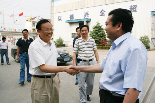 在鄭長玉董事長的陪同下,吳副書記等一行參觀了生產(chǎn)車間和成品車間并在公司會議室進行了座談。在了解了我公司的發(fā)展歷程、生產(chǎn)銷售、人才培養(yǎng)等情況后,吳副書記等人對公司近年來所取得的經(jīng)營成績給予充分肯定。他指出,工業(yè)是民族經(jīng)濟的支柱,尤其是機械設(shè)備工業(yè)是基礎(chǔ)中的基礎(chǔ)。在競爭日趨激烈的市場環(huán)境下,企業(yè)競爭力的提升關(guān)鍵要是靠人才的培養(yǎng),關(guān)鍵是要靠科技創(chuàng)新能力的提升和不斷完善的服務(wù)體系。同時吳副書記還指出,企業(yè)要發(fā)展必須實施“走出去”戰(zhàn)略,參與國際經(jīng)濟競爭與合作,努力開拓國際市場,提高國際市場占有率,在國際分工與合作中取得有利地位。