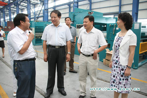 公司董事長(zhǎng)鄭長(zhǎng)玉向領(lǐng)導(dǎo)一行匯報(bào)了中德的發(fā)展歷程及目前的發(fā)展?fàn)顩r。重點(diǎn)介紹了我公司在車間管理和質(zhì)量監(jiān)督體制方面的完善工作,并從目前的發(fā)展局勢(shì)展望更好的發(fā)展前景。王司長(zhǎng)也關(guān)切地向公司領(lǐng)導(dǎo)了解一些機(jī)器方面的情況,在聽(tīng)到鄭董事長(zhǎng)匯報(bào)說(shuō)中德不會(huì)因目前的成績(jī)而有絲毫懈怠時(shí),王司長(zhǎng)滿意的點(diǎn)了點(diǎn)頭。參觀過(guò)大型裝配車間后,領(lǐng)導(dǎo)一行來(lái)到了成品車間,擺放在這里的一臺(tái)雙機(jī)聯(lián)動(dòng)數(shù)控折彎?rùn)C(jī)迅速地吸引了大家的眼球,鄭董事長(zhǎng)向領(lǐng)導(dǎo)介紹說(shuō)這臺(tái)機(jī)器已經(jīng)經(jīng)過(guò)商檢并即將發(fā)往波蘭并非常自豪地說(shuō)這位波蘭客商正是看中了中德的實(shí)力才會(huì)放心的與我們合作。隨后公司總經(jīng)理鄭小平向領(lǐng)導(dǎo)介紹了目前中德的國(guó)外代理點(diǎn)及國(guó)外銷售情況,表示中德還有非常大的外貿(mào)發(fā)展空間。