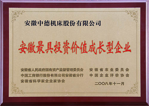 能夠進(jìn)入2008年安徽最具投資價(jià)值企業(yè)的評(píng)估百?gòu)?qiáng),是對(duì)企業(yè)各個(gè)方面的能力的權(quán)威肯定,因?yàn)樵u(píng)價(jià)結(jié)果將為各級(jí)政府決策提供參考依據(jù),為金融機(jī)構(gòu)、融資機(jī)構(gòu)的企業(yè)信貸決策提供參考依據(jù),為企業(yè)充分展示自身的成長(zhǎng)能力、投資價(jià)值和戰(zhàn)略合作伙伴提供機(jī)會(huì)。此次進(jìn)入“2008安徽最具投資價(jià)值成長(zhǎng)型企業(yè)百?gòu)?qiáng)榜”對(duì)于中德機(jī)床來(lái)說(shuō),意義深遠(yuǎn)。中德將在技術(shù)創(chuàng)新,開(kāi)辟?gòu)V闊市場(chǎng)方面做進(jìn)一步的努力。